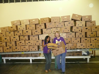 Next, bins are rolled to the sorting area. Volunteers examine every can and box to ensure it’s sealed and safe. Boxes are stacked on a pallet and wrapped for safe keeping. They don’t stick around long! Monday, these boxes are distributed to hunger relief agencies who will directly give them out to our neighbors in need. The night finally wraps up around 10:00 pm.