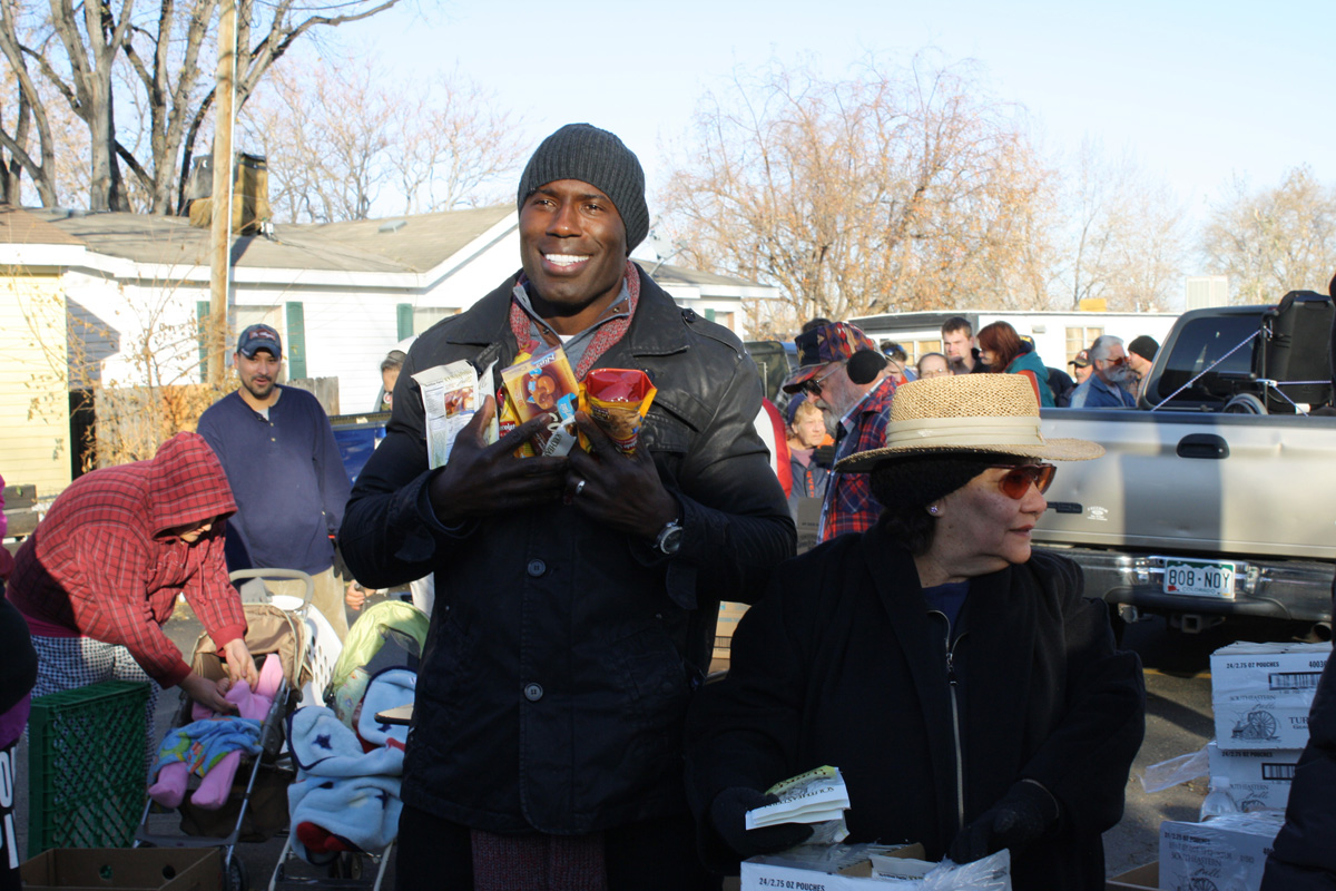 Thanks to Safeway for organizing a terrific event, to Terrell for benefiting us through your delicious Bar-B-Que Sauce and to Terrell and Mayor Hancock for taking time out to volunteer at our Mobile Pantry site. It was a real treat! You can find Terrell’s famous sauce at all Safeway locations in Colorado!