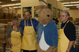 April 8th was a busy Wednesday at FBR! It’s not often that we’re served the very food that’s being donated, but yesterday that was the case. The Colorado Egg Producers donated 194,000 eggs to FBR all while cooking up fresh omelette’s for our volunteers and staff! As if that wasn’t excitement enough, the Easter Bunny showed up and took pictures with over 50 kids from Little Giants Day Care (and a few adults too).